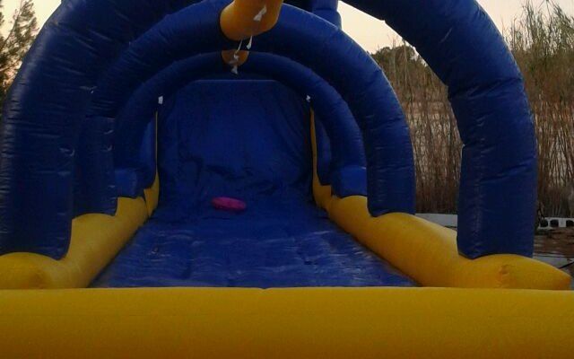 En Verano de 2014, recibimos nuestra colchoneta hinchable acuática con pista de deslizaje. Se trata de un Castillo Hinchable de 14 metros de largo por 4 metros de ancho. Tiene un tobogán el cual se puede alquilar por separado, para acoplarlo en piscinas. Lo más impresionante de este hinchable es su larga pista de deslizaje.