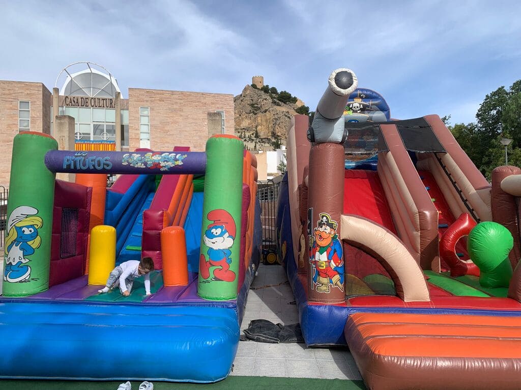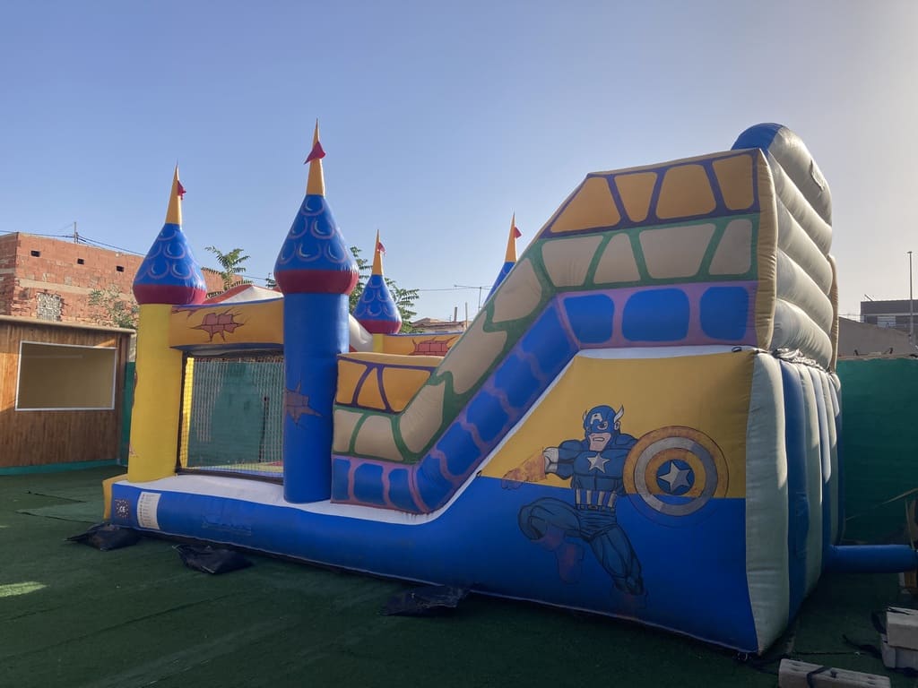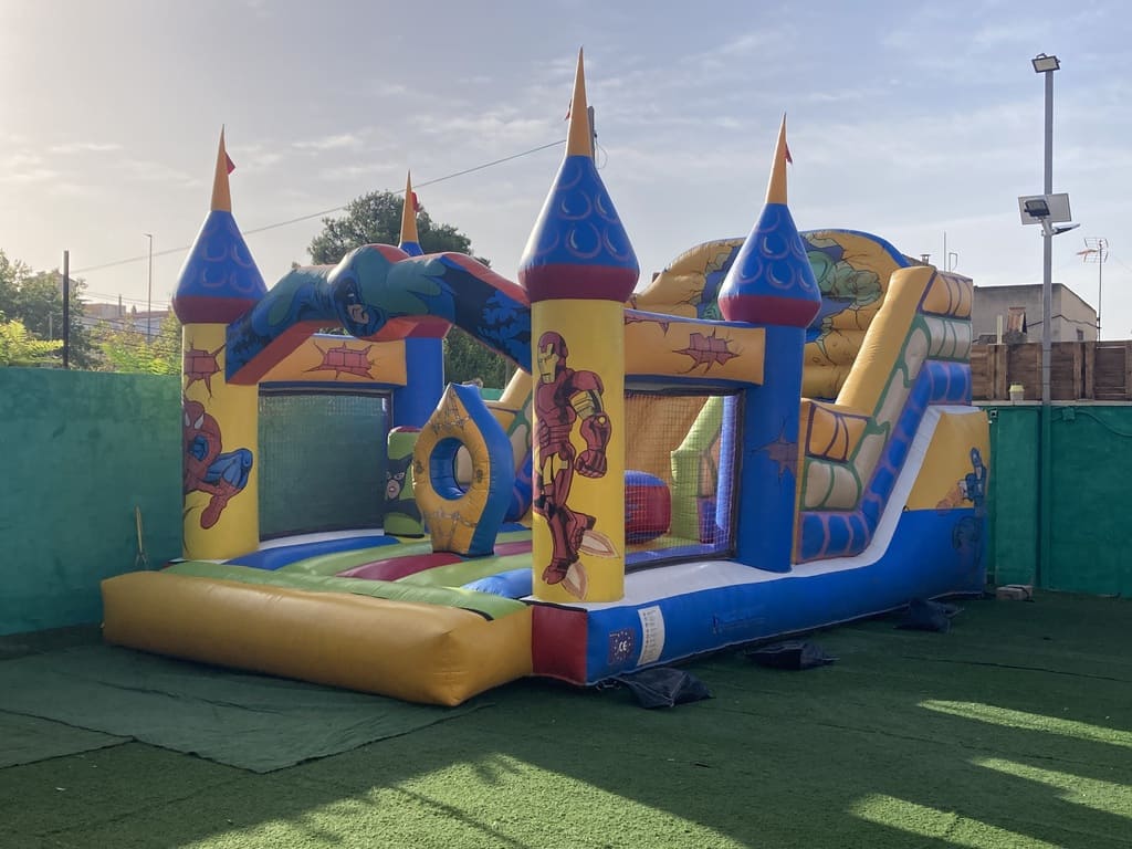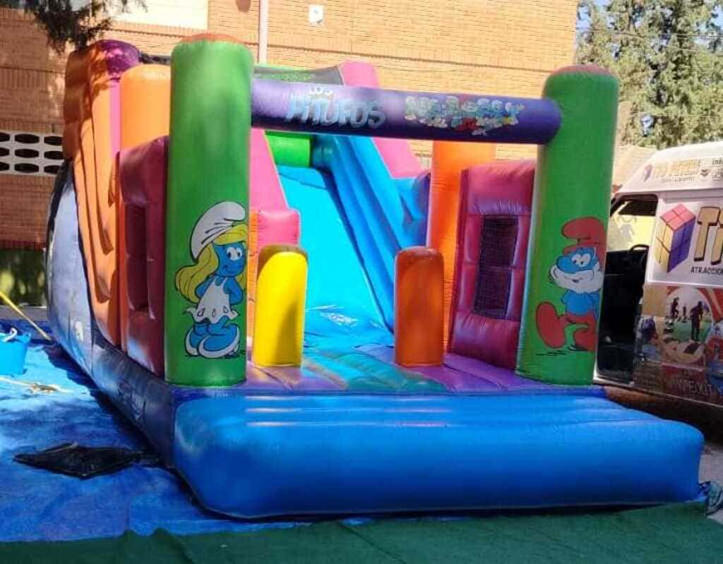 - Hinchable en buen estado, gran tobogán y zona de salto con obstáculos