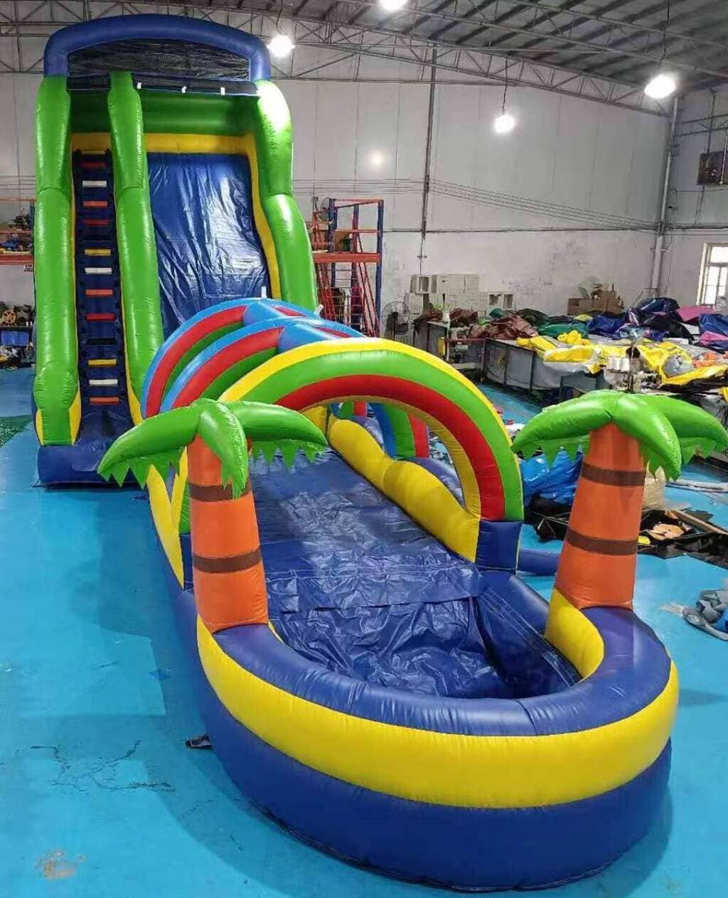- Hinchable en 2 piezas, con un gran tobogán de 7m de altura y un deslizante con piscina, que se puede usar por separado